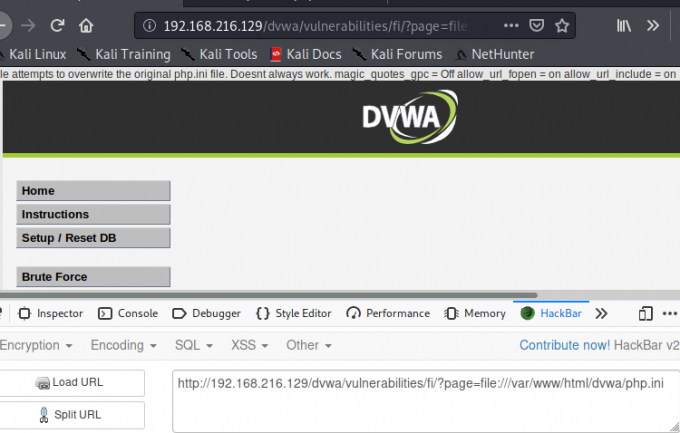 第二条warring是因为没有找到指定的page,在包含时出错。根据暴露出来的绝对路径:/var/www/html/dvwa/vulnerabilities/fi/index.php , 通过访问相对路径的方式../ 访问所有的路径,如访问