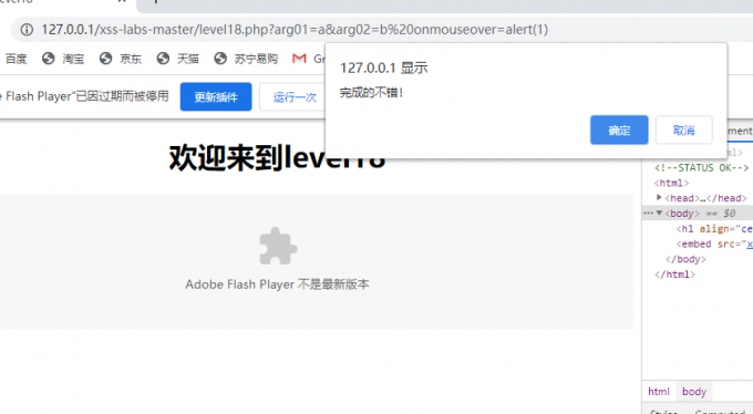 可以看到依然是将我们提交的两个参数插入到了<embed>标签的scr属性值中,并且还是引用了swf文件,但是没有显示出来。